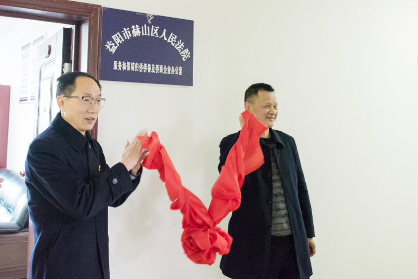 赫山區人民法院舉行“服務和保障歸僑僑眷及僑商企業辦公室”揭牌儀式